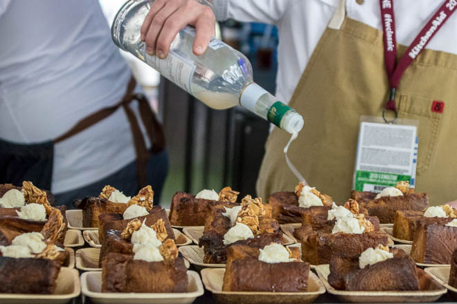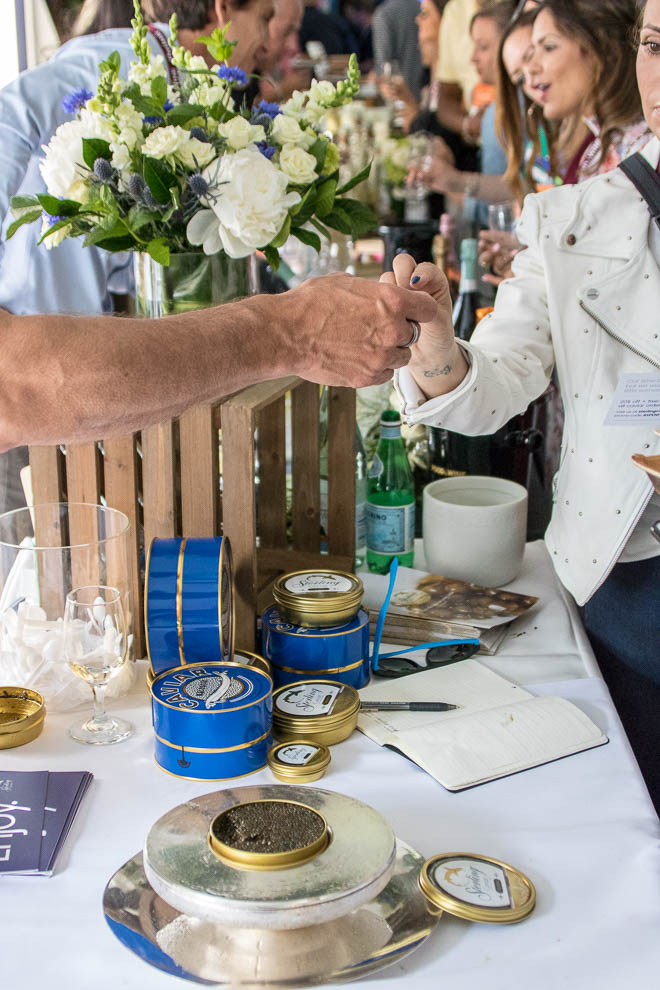 I already mentioned Richard Blais served it with Pringles, Jacques capped his deviled eggs with it, Tyler topped his uni custard with it, and in the Grand Tasting Tent, an American caviar display, Sterling Caviar, was conveniently located next to the Ca’Del Bosco Italian sparkling wine. Domestic caviar from the American white sturgeon, native to the American Northwest, is similar in quality and flavor to the Caspian Sevruga caviar. Sterling Caviar is a family-owned, Sacramento based company that is the leading producer of domestic caviar. You can order online here.