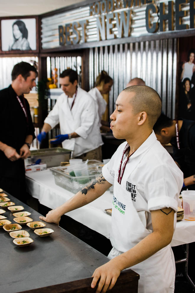 I would like to add photos of my honorable mentions from the tasting tent, which include dishes from more of Food & Wine’s Best New Chefs, Katianna Hong (The Charter Oak in St. Helena, CA) and Kate Williams (Lady of the House, Detroit) plus a few from Aria Las Vegas (includes Bardot Brasserie and Jean Georges Steakhouse), which is quickly becoming one of my favorite tasting displays of the Grand Tasting. I will never forget the year I was casually walking through the line to try a Mimolette Mac’n’Cheese and I looked up to say thank you only to find I was facing Michael Mina. With whom did I come face to face this year? Read on…