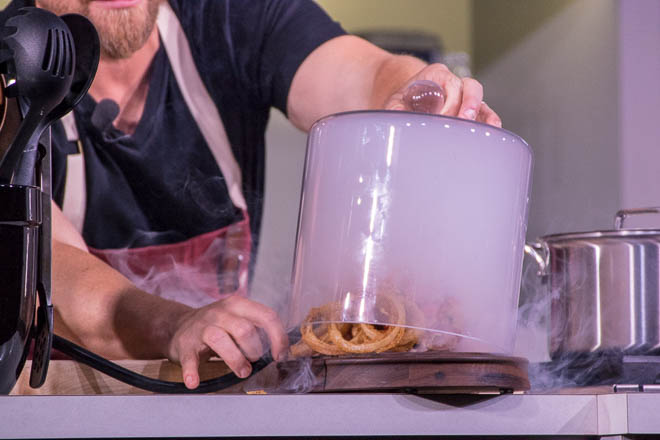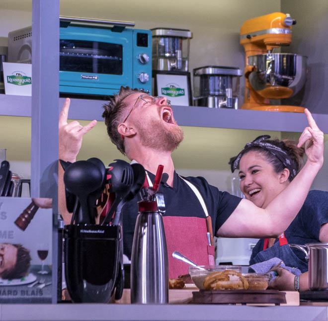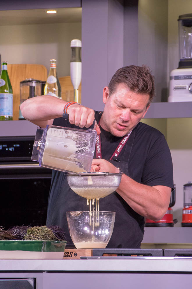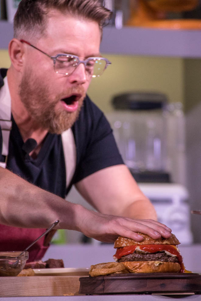 Plus, he makes a mess preparing chilled pea consommé (picture explosions and dry ice). This is all to be expected from a student of Thomas Keller and Ferran Adrià. Blais, a native New Yorker-cum-Southerner, is a winner of Top Chef All-Stars, a regular on the Food Network, a James Beard Award nominated cookbook author, and a restauranteur of such concepts as Flip Burger Boutique in Atlanta and Juniper & Ivy in San Diego. Blais pulled together many eye-popping recipes for the Food & Wine crowd, including the mouthwatering Breakfast Blais Burger, which is a Juicy Lucy beef patty served on French toast brioche buns that is topped with caramelized onions, a fried egg and sausage-milk gravy. Holy Moly. A heart-attack-on-a-plate never looked so good!