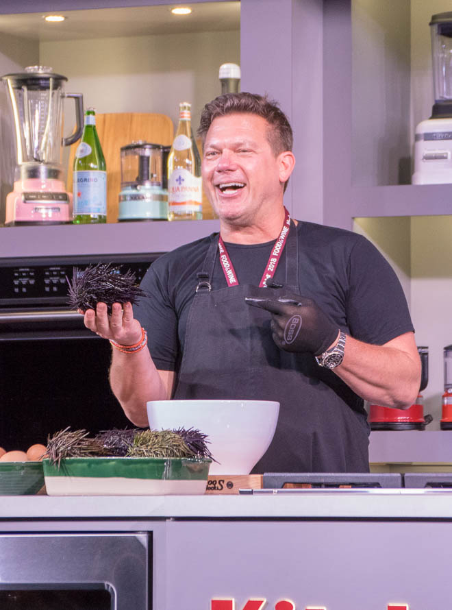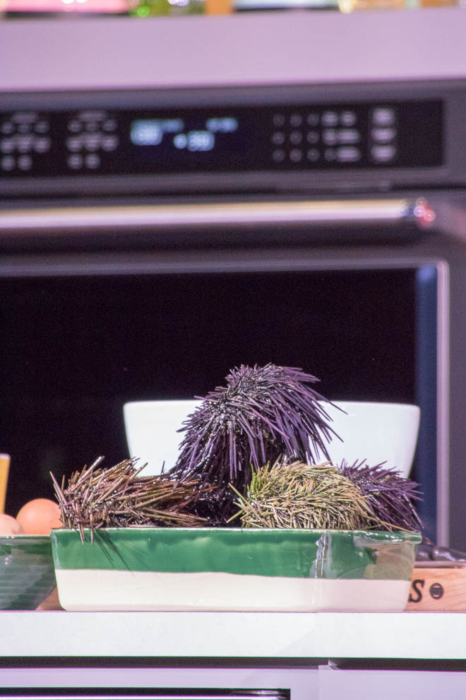 Uni, the Japanese word for sea urchin, may not be the first thing that comes to mind to serve when you are hosting a dinner party. But the popularity for this buttery seafood specialty is soaring in many restaurants, with some of the best uni in the world coming from the coastal shores of California. Tyler Florence showed us a documentary his company produced about uni harvesting and processing in his adopted home of Mendocino County. He also had many samples on hand and incorporated the urchin in a light Summer Corn Custard that would be perfect on its own for any dinner party.