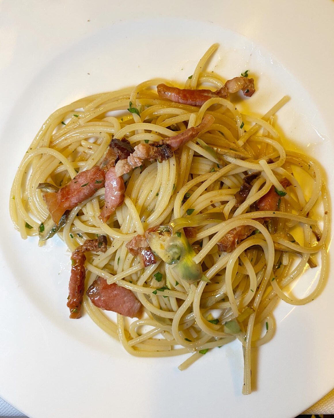 Buca dell’Orafo. A historic restaurant near the Ponte Vecchio, this traditional Tuscan eatery holds a special place in the city’s culinary scene. The restaurant is celebrated for its classic Tuscan dishes, offering a menu emphasizing the region’s rich and flavorful cuisine. We had one of the best meals: fried artichokes, spaghetti with guanciale and artichokes, and tortellini filled with spinach and ricotta in a ragú. Via dei Girolami, 28/R