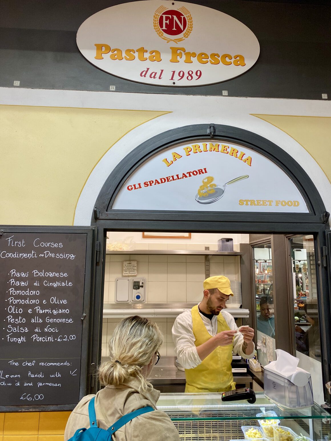 Best Street Food: Fagottini from Pasta Fresca in the Mercato Centrale (our tour guide says all the best restaurants buy their pasta here).