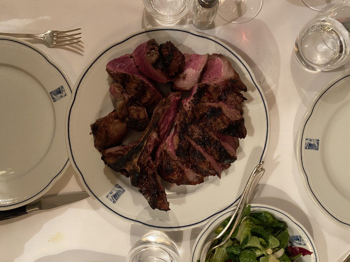 Buca Lapi. So originally I could not get a ressy at Buca Lapi, but our fabulous tour guide made it happen, and I am so thrilled she did. Buca Lapi, situated in the heart of Florence on Via del Trebbio (a stone’s throw from La Bussola), is a venerable establishment with roots dating back to 1880. It occupies a former wine cellar and the vaulted ceiling is a stunner. The cuisine at Buca Lapi is emblematic of traditional Tuscan fare, featuring renowned dishes like bistecca alla fiorentina and ribollita, and tagliatelle with pomodoro. They also served a simple salad and made the dressing table side, which I realize sounds trivial, but was so incredibly tasty. Just a fabulous experience. Via del Trebbio, 1r