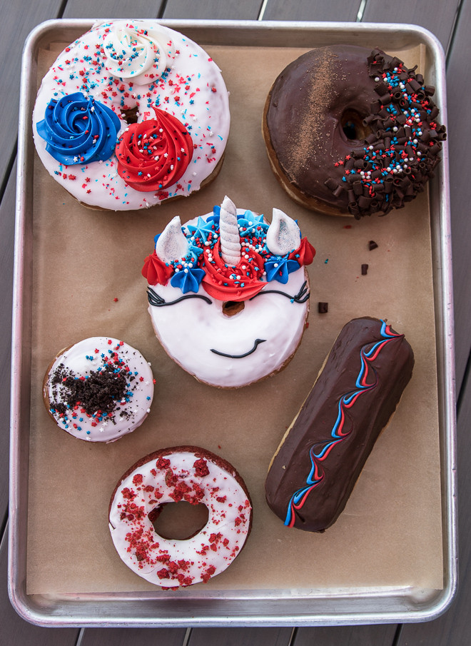 Are doughnuts the new cupcakes? You can see for yourself if you swing by Donut Bar in North Scottsdale, a San Diego based concept that has the West Coast buzzing about its delectable treats. Highlighted by Fodor’s and Thrillist as having some of the best doughnuts in the country, it is only fitting that for a limited time starting July 2, Donut Bar would celebrate America’s birthday with a special line of Independence Day doughnuts, including a version of their famous Unicorn Donut. Donut Bar is known for wowing the public with their distinctive donut creations, like their Grilled Cheese Donut and French Toast Donut, served with butter, jelly and maple syrup. They also have a daily offering of 3-4 vegan options, including the Strawberry Split, with soy based cream, the Sprinkle Cake doughnut and the Crème Brulée Donut. Donut Bar opens at 7 am weekdays and 8 am weekends, and closes at noon, or when sold out. Something else to consider, is on Fridays and Saturdays, they reopen at 5 pm for specialty beer and doughnut pairings. I would agree that these doughnuts are worth the celebration! xoM