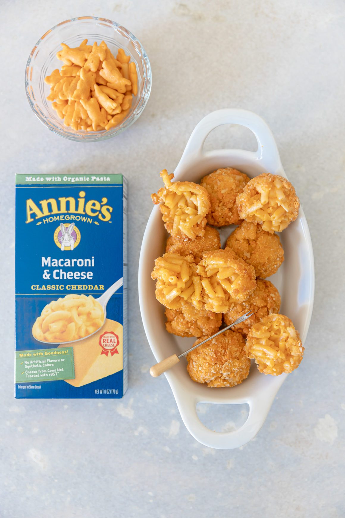 Arancini Macaroni and Cheese made with Annie’s Organic Macaroni and Cheese and Cheddar Bunnies Cracker Crust