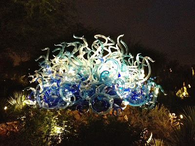 Hubby and I spent a date night at the Desert Botanical Garden to see Las Noches de las Luminarias during the Chihuly in the Garden exhibit. American glass sculptor Dale Chilhuly has paired with the Desert Botanical Garden for a second time to display his unique works of blown glass art. The Chihuly exhibit runs through May 18, 2014, and features 21 stunning sculptures specially selected and placed throughout the Garden.