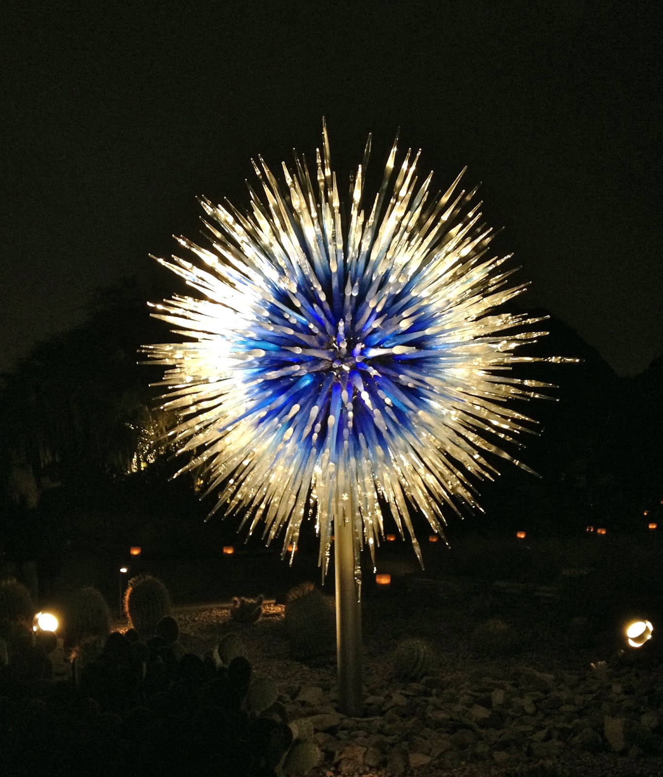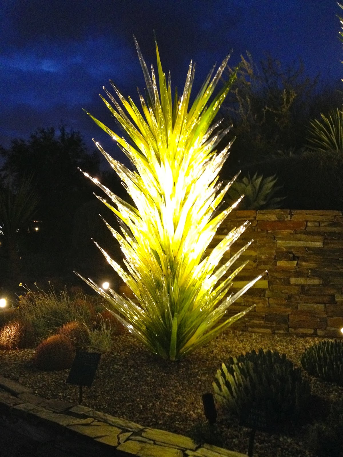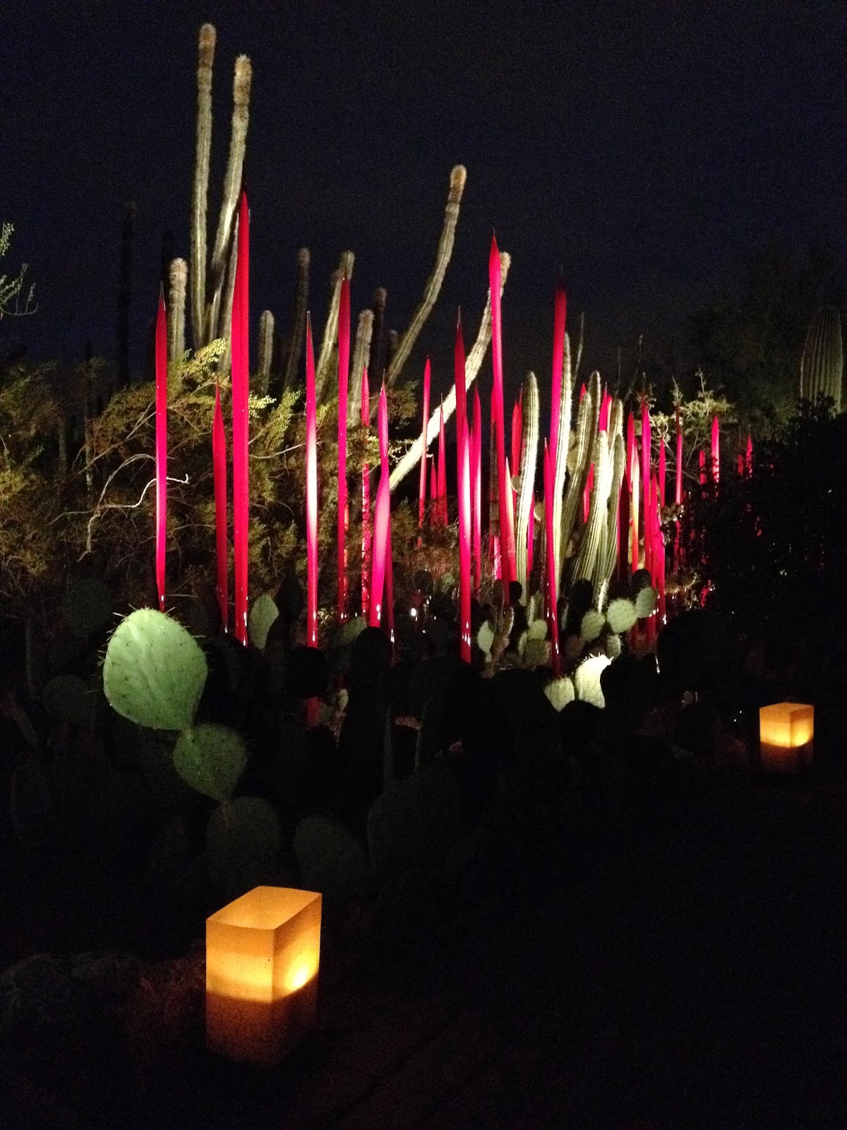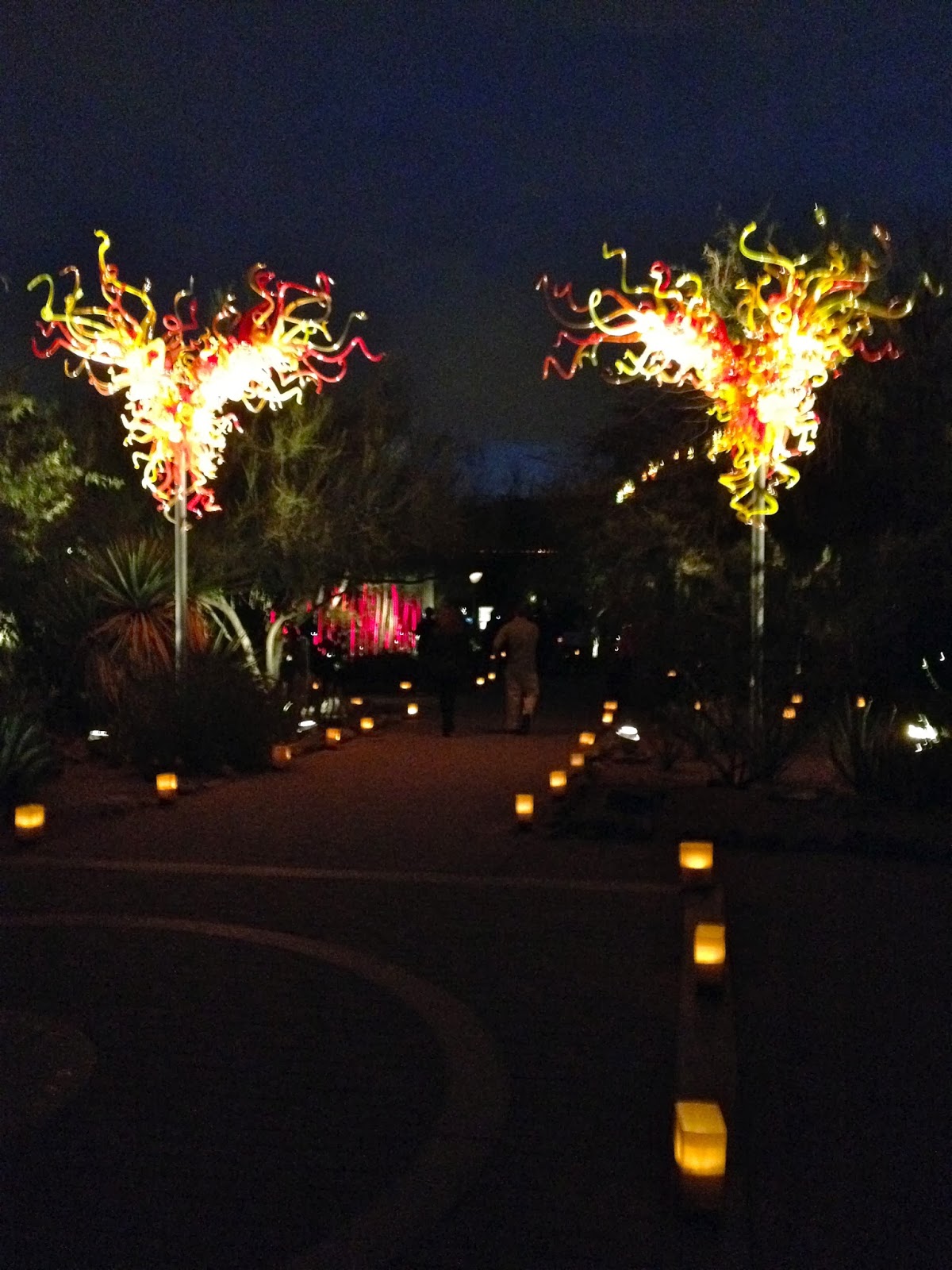 Hubby and I spent a date night at the Desert Botanical Garden to see Las Noches de las Luminarias during the Chihuly in the Garden exhibit. American glass sculptor Dale Chilhuly has paired with the Desert Botanical Garden for a second time to display his unique works of blown glass art. The Chihuly exhibit runs through May 18, 2014, and features 21 stunning sculptures specially selected and placed throughout the Garden.