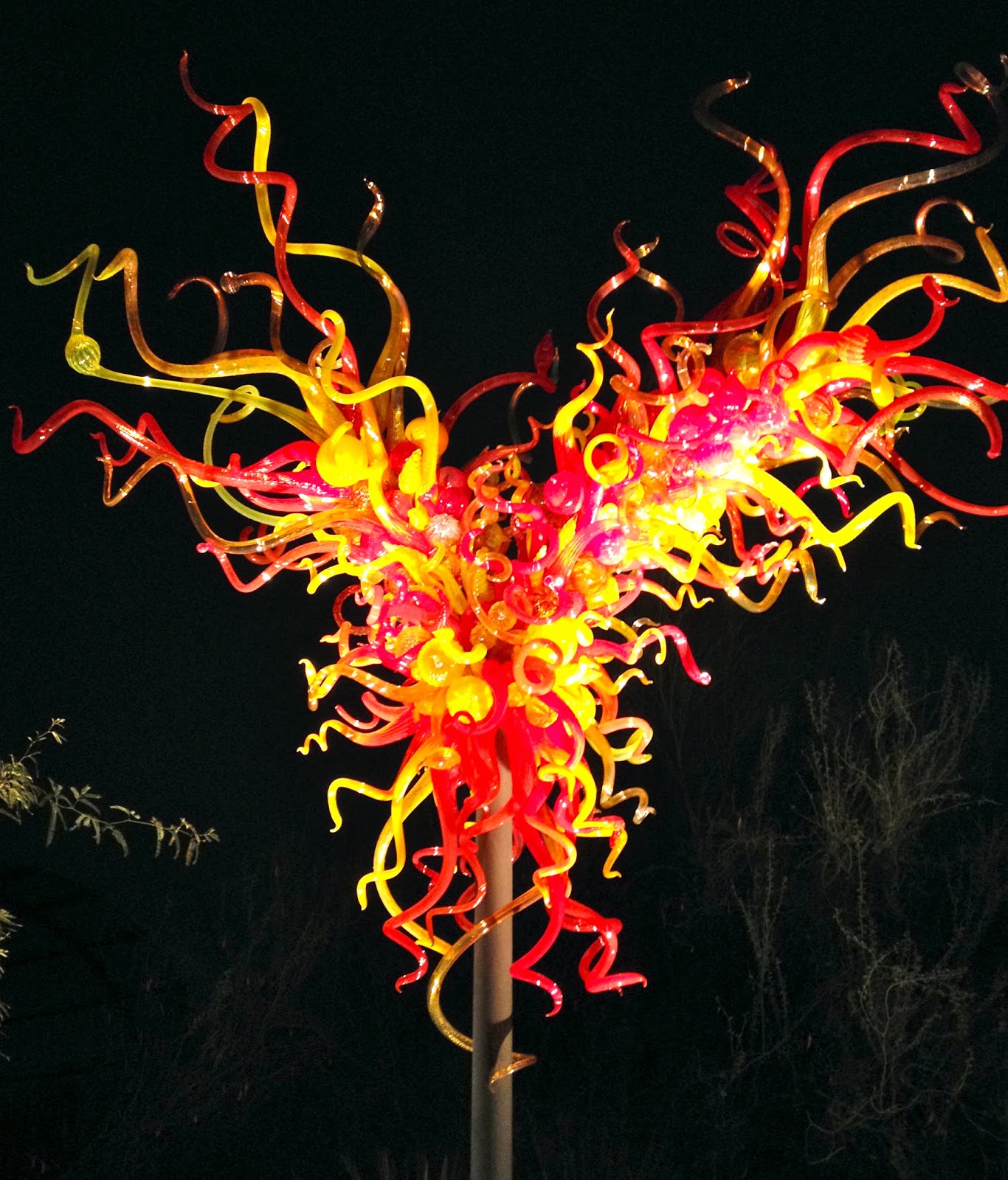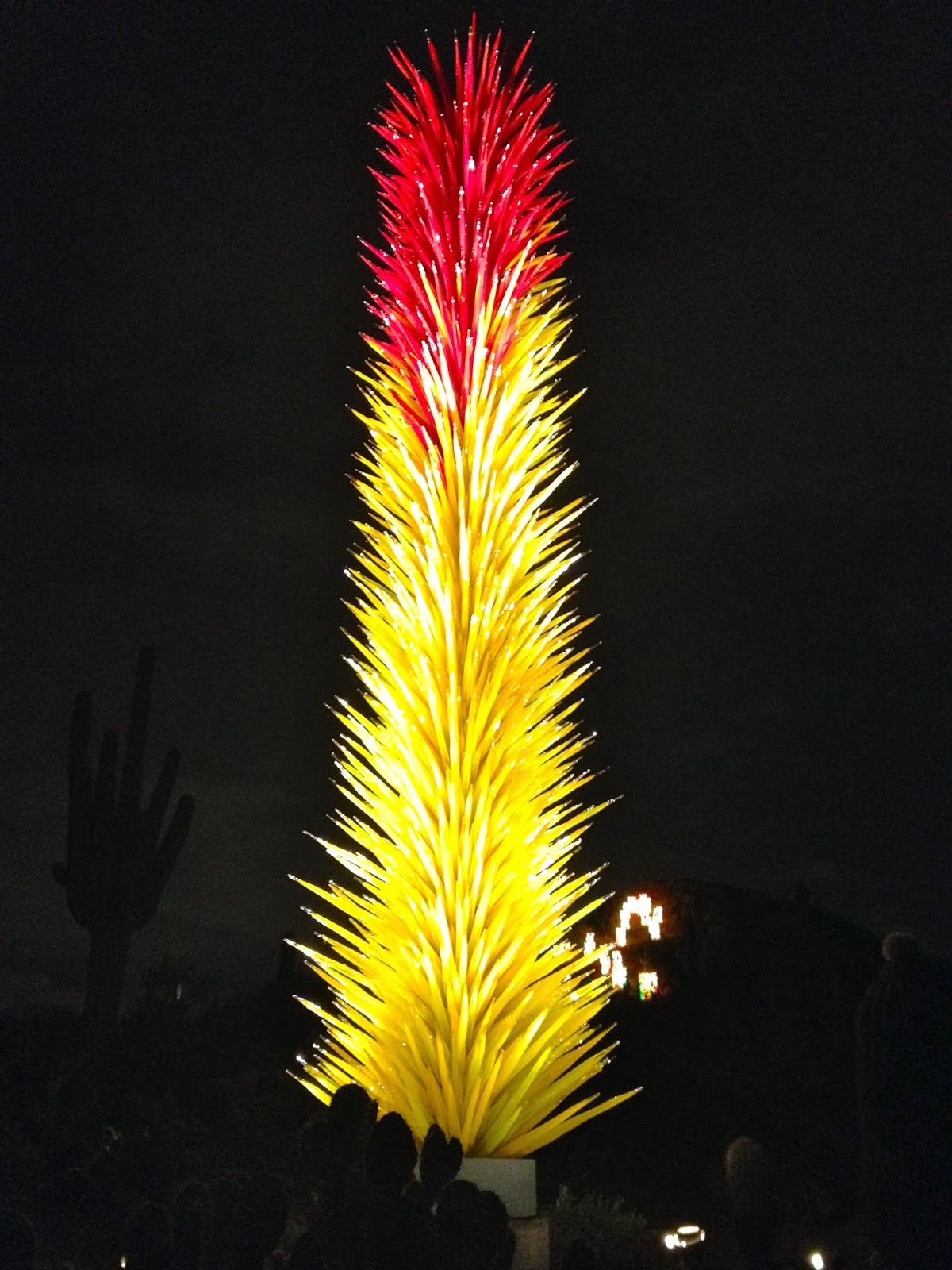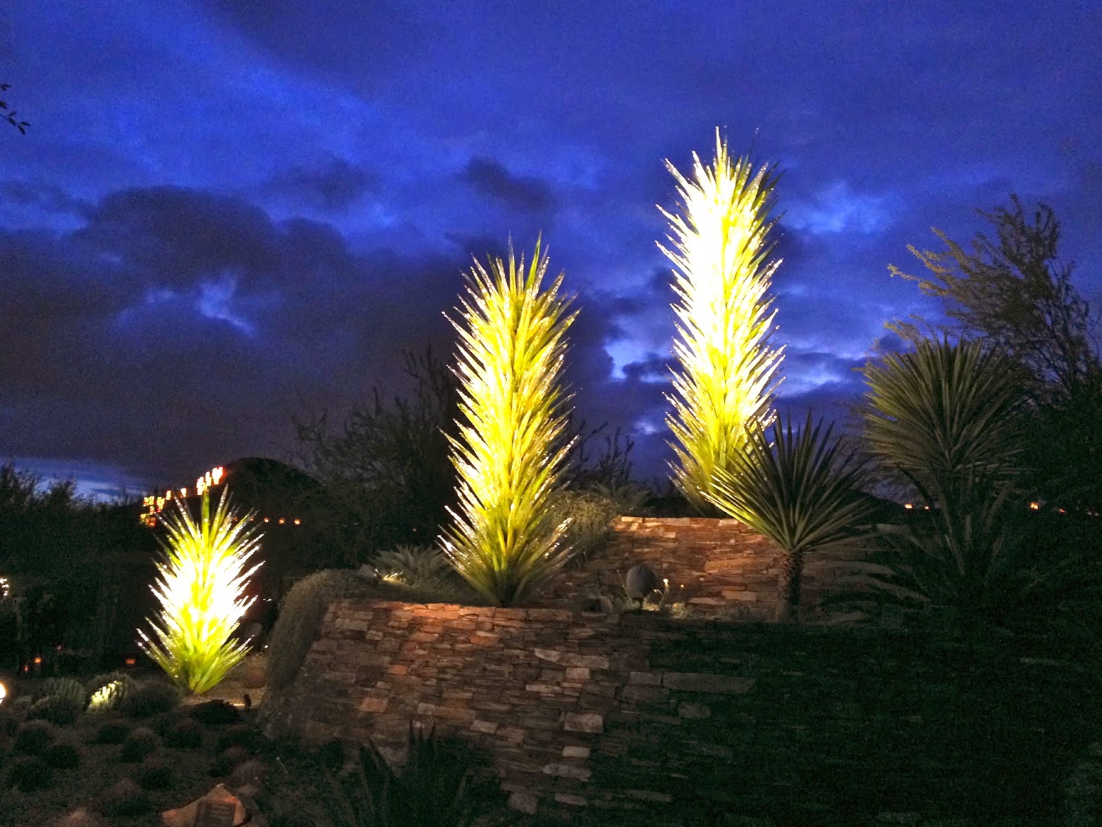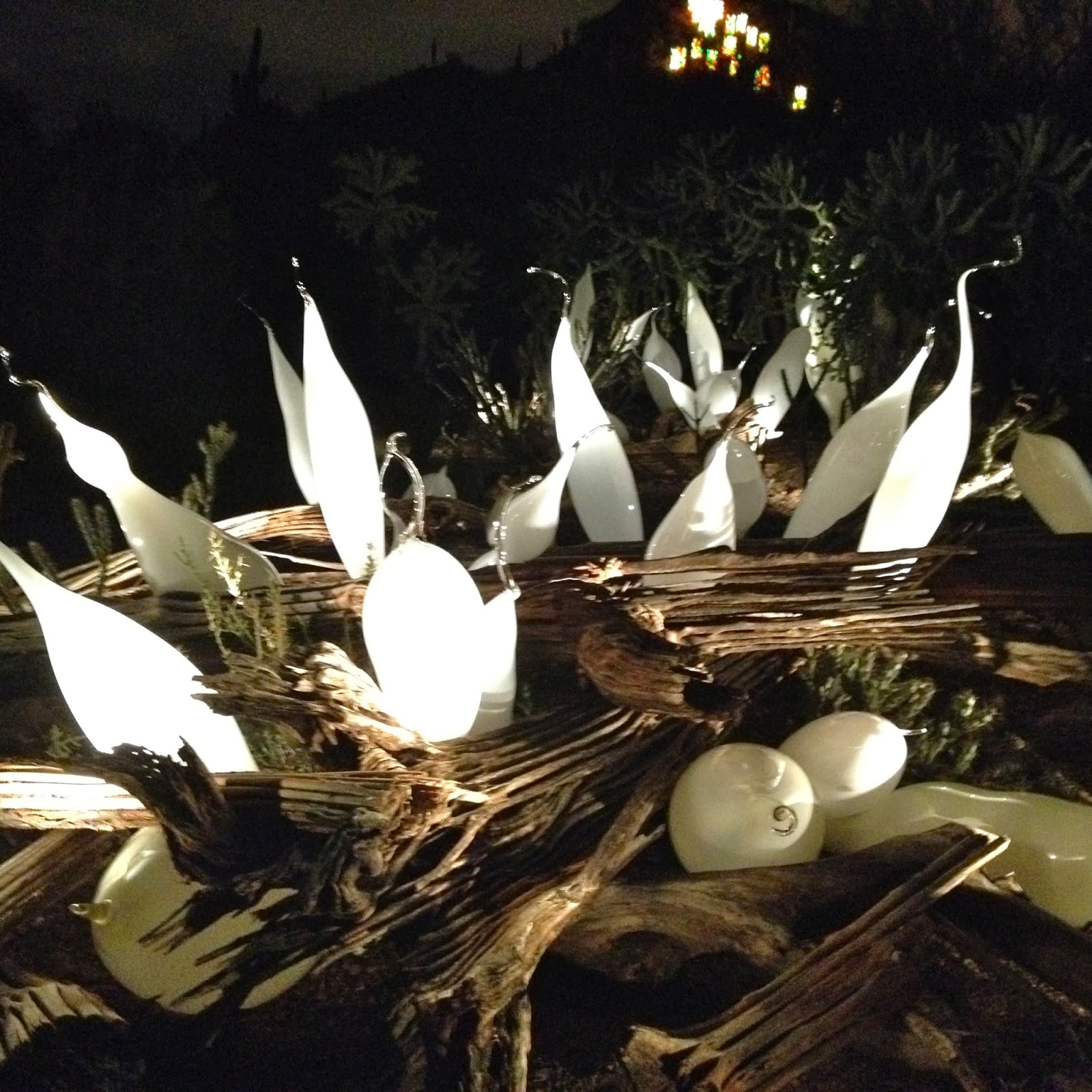 Hubby and I spent a date night at the Desert Botanical Garden to see Las Noches de las Luminarias during the Chihuly in the Garden exhibit. American glass sculptor Dale Chilhuly has paired with the Desert Botanical Garden for a second time to display his unique works of blown glass art. The Chihuly exhibit runs through May 18, 2014, and features 21 stunning sculptures specially selected and placed throughout the Garden.