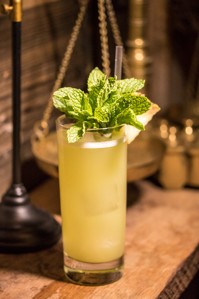 So I guess you could say that tiki drinks are in my blood. Therefore, when I was asked if I was interested in visiting UnderTow, a tiki bar in Phoenix, and snapping a few pics for my blog, I was all in. UnderTow is an intimate 30-seat tiki bar discretely situated beneath Sip Coffee & Beer Garage at Indian School and 36th Street. There is no sign…you literally walk into Sip and stare around befuddled until someone points you in the direction of a set of stairs leading below. The bar derives its name from the fact that it is situated in a (former) oil bay that is part of the (former) auto garage that Sip currently occupies. Because of its size–500 square feet–it is recommended to make a reservation. Reservations for parties of 6 or fewer guests are for a 90-minute block of time. The décor is reminiscent of the belly of a classic clipper ship, with portholes that run a series of maritime experiences (footage played on LCD screens) including sailing along calm seas, running into the occasional rainstorms and docking in exotic ports. In celebration of their one-year anniversary, owners Jason Asher and Rich Furnari have launched a new drink menu that includes 25 new drinks on their 38 cocktail menu. The list is extensive, and yes, they can make a mean Fog Cutter. Albeit, slightly different than Vic Bergeron’s Samoan Fog Cutter recipe that I have listed below, but any one of UnderTow’s tropical drinks will have you bellowing “Drunken Sailor” in no time. Cheers! xoM