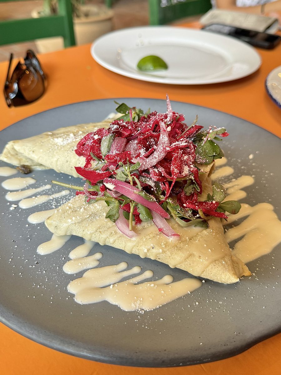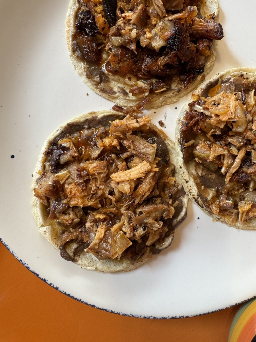 - Las Barbacoas de México: Our first stop after landing and conveniently close to the airport (and an Alejandro Ruiz restaurant), Las Barbacoas de Mexico is a fantastic spot for traditional Mexican BBQ and Oaxacan specialties such as memelas (corn masa tortillas topped with Oaxacan queso and barbacoa), tlayudas (large, thin, crunchy, fried or toasted tortillas covered with queso Oaxaca and barbacoa), and tetelas (small, triangular pockets of corn masa filled with barbacoa).