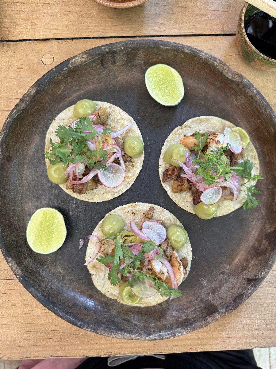 - OaxaCalifornia: Another Alejandro Ruiz restaurant, and this one blends the vibrant flavors of Oaxacan cuisine with the innovative touches of Californian culinary traditions. The menu features dishes that highlight fresh, locally sourced ingredients, combining Oaxacan staples like mole with Californian elements such as avocados and seafood. I had a delicious tostada overflowing with octopus, shrimp, and fish ceviche that lived up to its name of tostada embarazada (pregnant tostada).