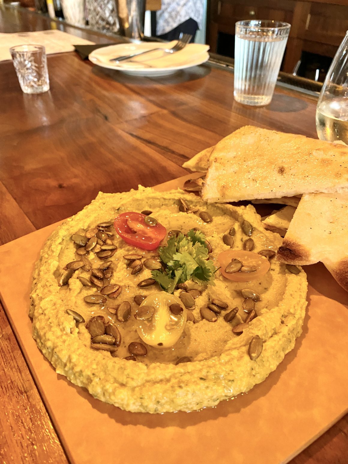 Part of the Humble Pie group, Humble Bistro is a charming restaurant decorated with Edison bulbs, stamped metal ceiling, and brick walls. I ordered a $6 frosé to complement the 110-degree heat, and split the meatballs and hummus platter with Dianna. My total was $12.77.