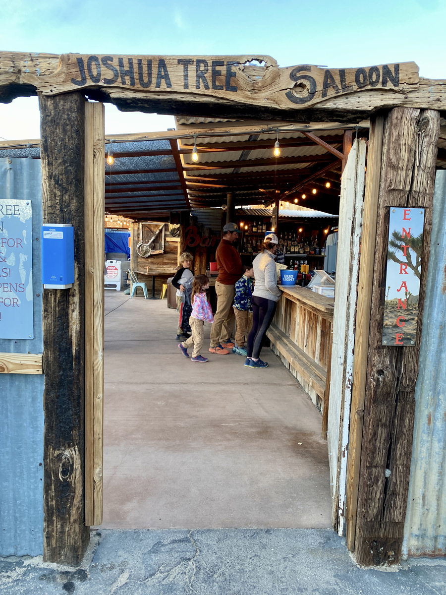 Joshua Tree Saloon. In general, many restaurants play to an Old West kind of vibe, and the Joshua Tree Saloon is no exception. We went here for dinner on our first night and were able to be seated after a 45-minute wait. They have a nice selection of beer on tap, burgers (try the Hatch Chili), tacos (famous for their Fried Cod), and many more fried items like Fried Pickle Spears and Jalapeño Poppers. 61835 Twentynine Palms Highway.
