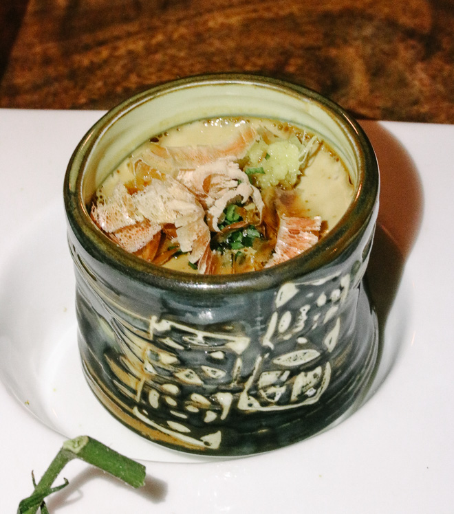 Hot Chawanmushi: David Jordan Two Wash Ranch duck eggs puréed with foie gras, topped with sugar and torched like crème brûlée.