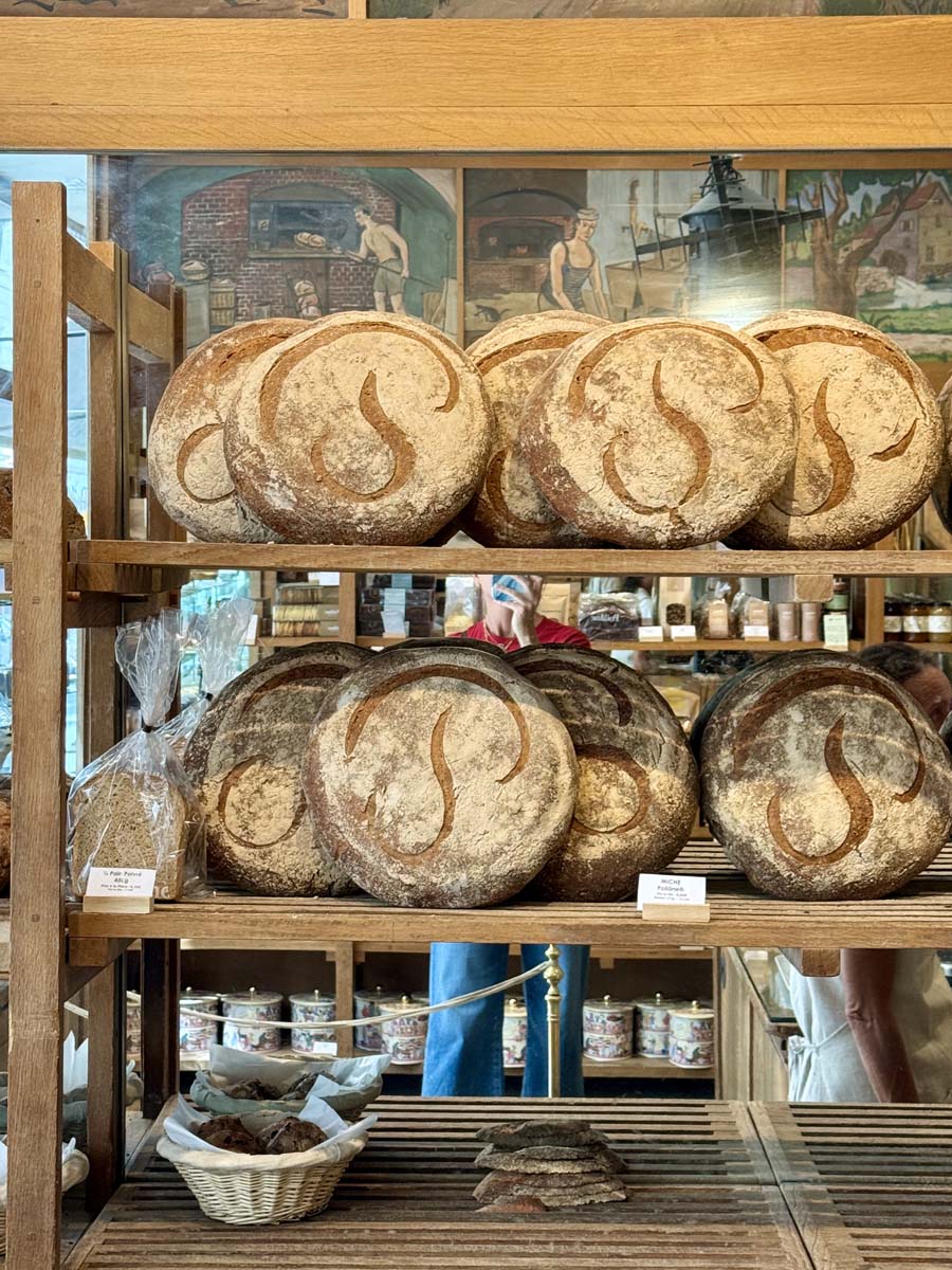 As promised in my post on the Paris Olympics, I’m following up with a little history lesson on bread – specifically, the world-renowned sourdough from Poilâne bakery on 8, Rue du Cherche-Midi in Paris. Our visit was extra special, thanks to Sudeep Rangi, a lovely man we connected with through mutual friends. Sudeep, who hails from Louisiana, now lives and works in Paris alongside his partner, Apollonia Poilâne, the third-generation owner of Poilâne who carries on a rich family tradition. (Fun fact: Sudeep and Apollonia met while bike riding and still share a passion for cycling.)