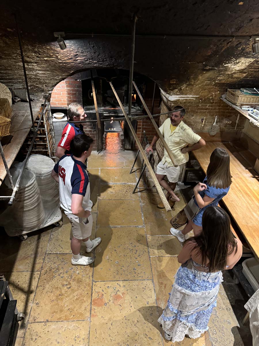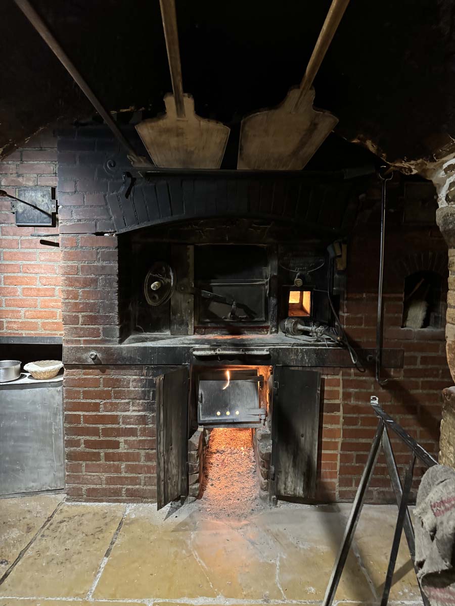 And so, Poilâne bread was born: a large round rustic sourdough loaf made with stone-ground flour, natural leavening, and baked in a wood-fired oven and marked with the signature “P”. One of the defining qualities of the bread is its deep, flavorful crust and dense, chewy interior, which comes from using a centuries-old fermentation process and wood-fired baking. A highlight was seeing the enormous three hundred year old wood-burning over, which I understand needs to stay continuously lit (except for the rare occasion for maintenance and repair).