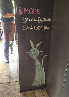 After landing in Santa Barbara, and before taking the 101 to the 154 to Los Olivos (have you seen the SNL skit, The Californians?), we dashed downtown for a light seafood lunch at Hungry Cat, specifically to nosh on Santa Barbara sea urchin.