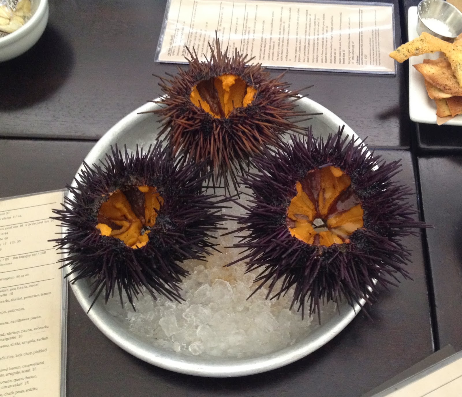 After landing in Santa Barbara, and before taking the 101 to the 154 to Los Olivos (have you seen the SNL skit, The Californians?), we dashed downtown for a light seafood lunch at Hungry Cat, specifically to nosh on Santa Barbara sea urchin.