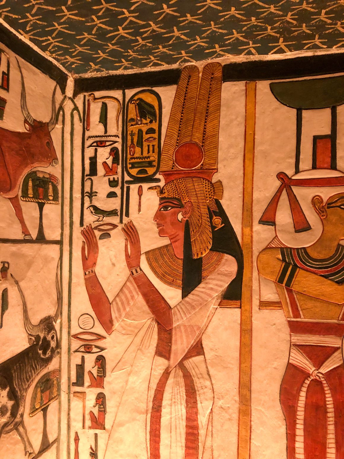 Nefertari’s tomb was discovered in 1904 and is considered the “Sistine Capel of Ancient Egypt”. The wall paintings in her tomb are exquisite. Only 150 visitors are allowed every day, and tickets are first come first serve, hence the reason we woke up at 5 am. Once inside, we were only allowed 10 minutes and were not allowed to take any photos. Of course, we dutifully abided by both of these rules.