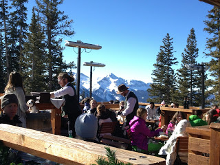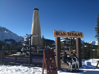 Eating at Bon Vivant, located at about 10,000 feet at the top of the Polar Queen Express, is the next best thing to eating in the French Alps. The umbrella, opened usually when snowing, is 39 feet in diameter and was made in Austria and brought to the US by boat.
