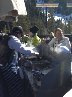 The sandwich is served with an equally delicious tomato soup. Wash it down with some Italian red wine, and you have the end of a perfect ski day. I say end, because at 12,000 feet, the wine hits you pretty quickly and you still have 3,000 vertical feet to ski down.