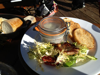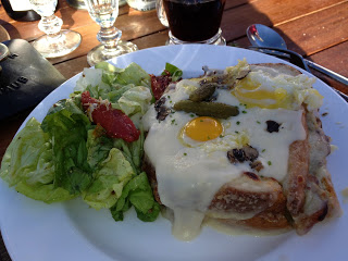As we wrapped ourselves in faux fur throws they lent us (and ordered more wine and champagne), we had to make the serious decision of what to order for lunch. We tried the french onion soup, the elk sausage cassoulet with (more) duck leg confit, and the lamb and chimay ale stew with pommes dutchess. But my favorite was the croque madame with quail eggs and black truffles. It was an unbelievable mix of ham, gruyere cheese, bechamel sauce, fried quail eggs and black truffle shavings. And a little salad, to add some color, I believe. Even if you don’t ski, you need to run to this place to try it. Yes, I lived in Paris, and yes, I have tried many a croque monsieur and madame in my life, but nothing like this.