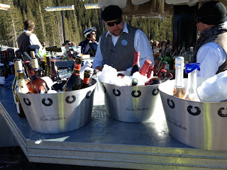 The champagne we ordered was chilled table-side in the shells from the 150 mm howizer guns that are used to blast for avalanche control.