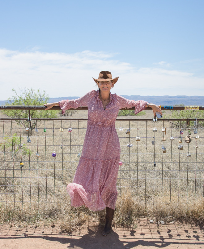 On the way out of town, we pulled off the roadside to snaps pics of Prada Marfa, technically located a mile west of the town of Valentine. I was worried that we wouldn’t be able to locate the building, but it is literally on the side of the road, and everybody makes a stop to catch a selfie and post on IG, including yours truly. Until next time, happy trails, y’all! xoM