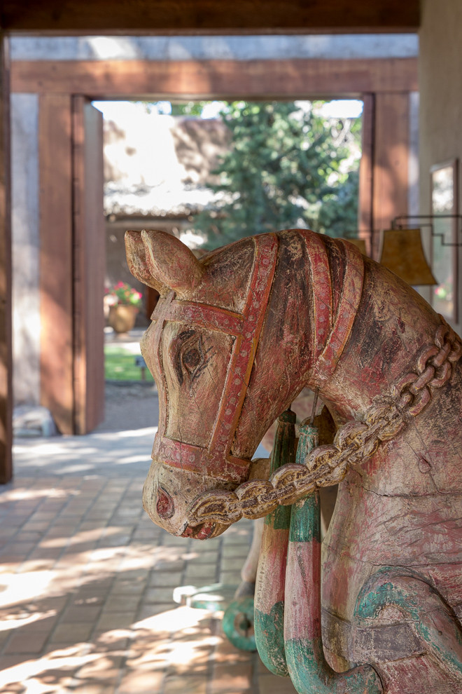 A recent family trip led us to the stark beauty of West Texas and the trendy town of Marfa. Preferring adventure and outdoor activities, we opted to stay at the Cibolo Creek Ranch. Cibolo Creek Ranch is a luxury resort located inside the crater of an extinct volcano in the Chinati mountains on 30,000 acres 30 miles south of Marfa. The resort was built around three 19th century forts that were strategically located on the grounds of springs. These springs, interestingly, were once the only water source between El Paso and the Rio Grande River. The guest rooms are scattered throughout the forts, and retain a sense of Old World charm with adobe walls, cottonwood beams, Saltillo tile and other Mexican design accents.