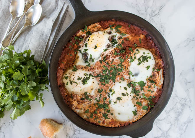 Poached Eggs in a Spicy Tomato Sauce (Shakshouka)