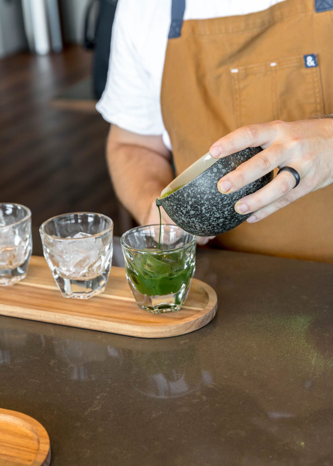 Even the way Vale brews their matcha is deliberate. Jeffrey shared that he whisks the tea at around 155°F, slightly cooler than the usual range, to preserve chlorophyll and prevent bitterness. The result is a strikingly bright green cup with a velvety texture. As he explained, matcha naturally contains emulsifiers: “When you whisk it, it takes on this almost custard-like body—it’s what makes the mouthfeel so special.”