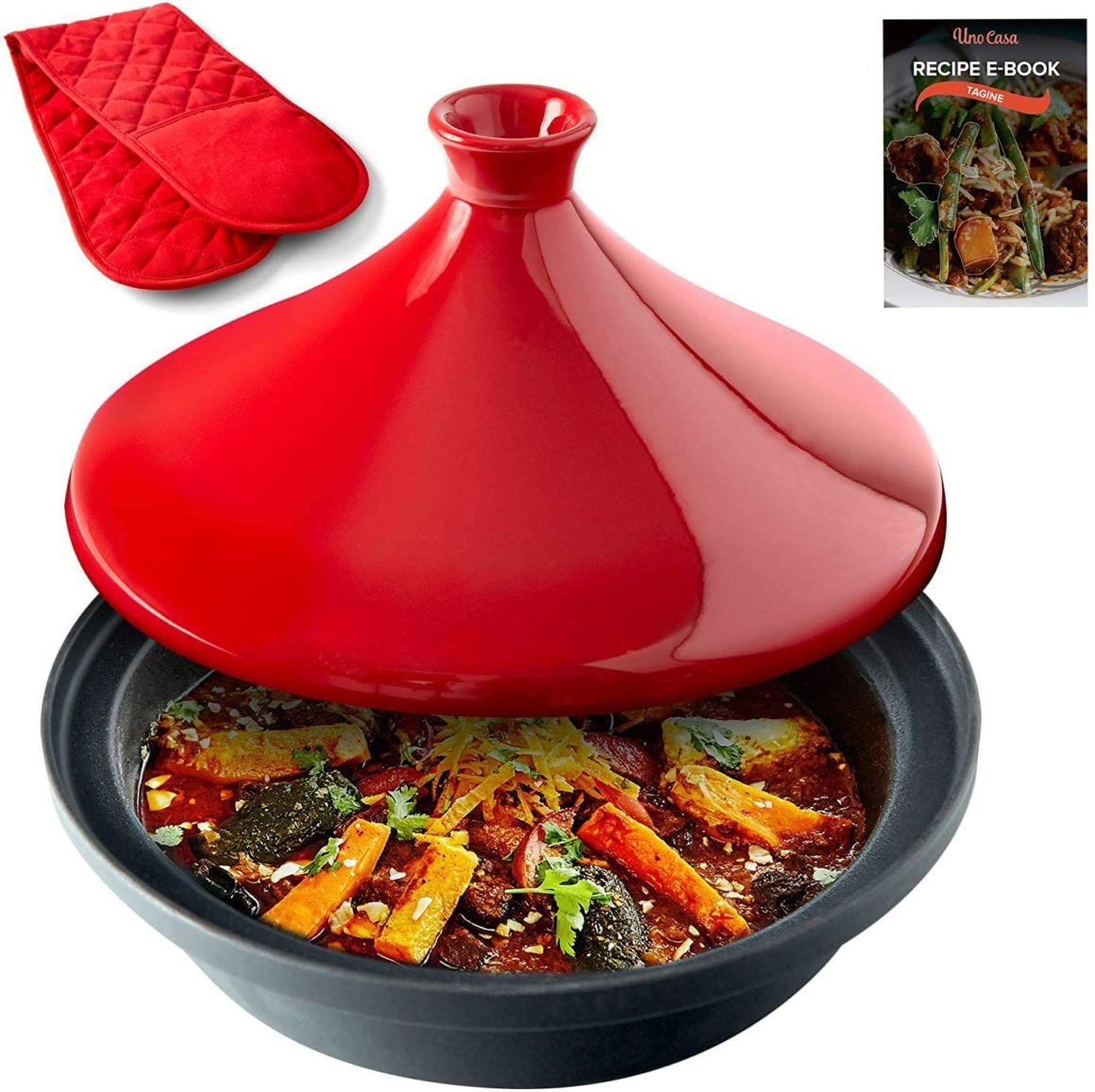 It is this memory that inspired me to go about developing a vegetarian Moroccan-style tagine, or stew, that is savory and slightly sweet with a hint of spice. Interestingly, the word tagine originates in North Africa and refers to the cone-like earthenware pot (similar to the one pictured below that can be found on Amazon), as well as to the stew-like dish that is slow cooked in said earthenware pot. The bottom of a tagine is a wide, shallow circular dish used for both cooking and serving, while the top of the tagine is distinctively shaped into a cone, the purpose of which is to return moisture to the base of the tagine.