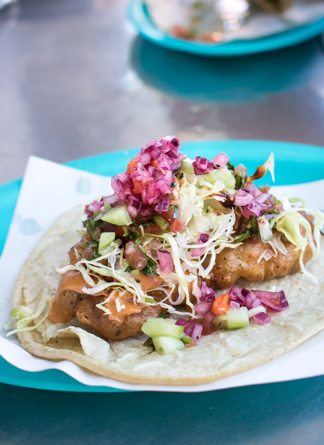 I am forever changed by our Foodie Tour of Ensenada. For in the span of two hours, I had the best Baja Fish Tacos and Clam Cocktails in my life. Plus I tried a tostada topped with uni (sea urchin) and tuna. And no, I did not get La Turista. It is all that fresh and that good!! Just see for yourself: