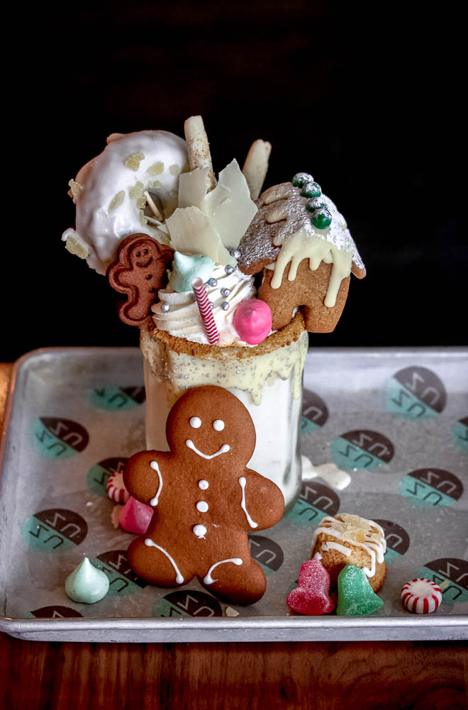 My post wouldn’t be complete without the monthly Show Stopper Shake from Café ZuZu at the Hotel Valley Ho. The December shake marks my 12th shake, and it has been a joy shooting them year round. The White Chocolate Vanilla Gingerbread Shake has white chocolate and gingerbread ice cream, vanilla whip cream, almond spice cake donut, white chocolate dipped pirouette cookies, green and red merengue kisses, gingerbread men and a mini gingerbread house. This shake will put anyone in the holiday mood! Merry Merry to all! xoM