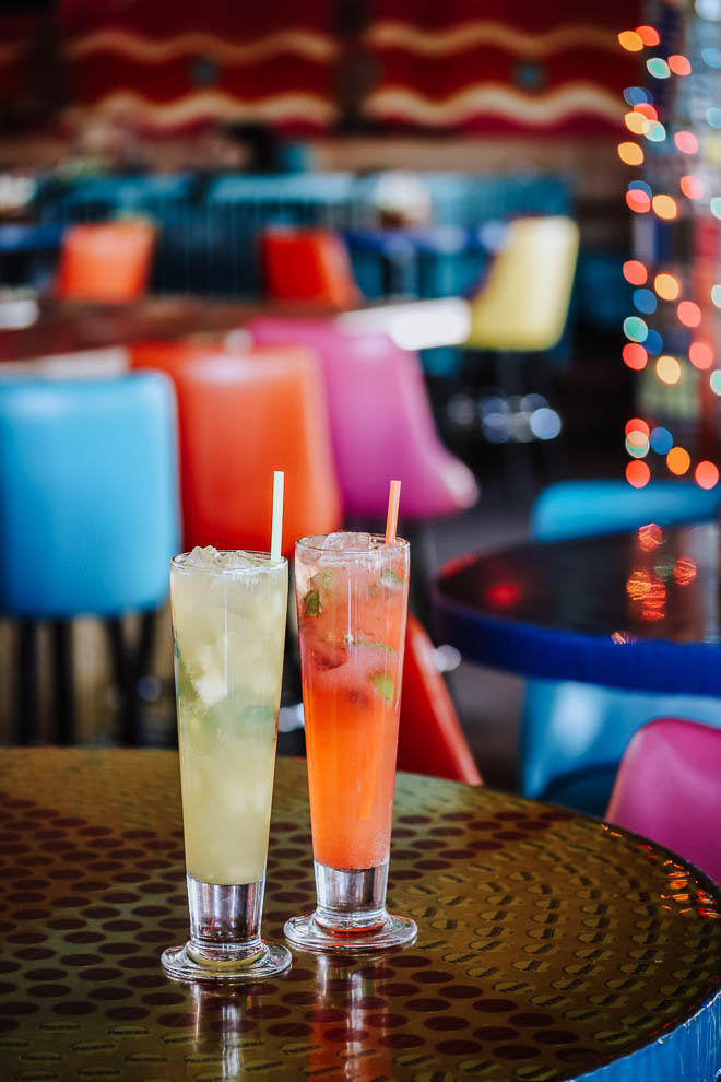 First of all, you could point to their environmentally conscious interiors: the picnic and four-top tables are made from upcycled milk jugs; the red chairs are made of upcycled Coca-Cola bottles; and the interiors feature wood panel walls made from Number 2 southern pine lumber, the most renewable timber available.