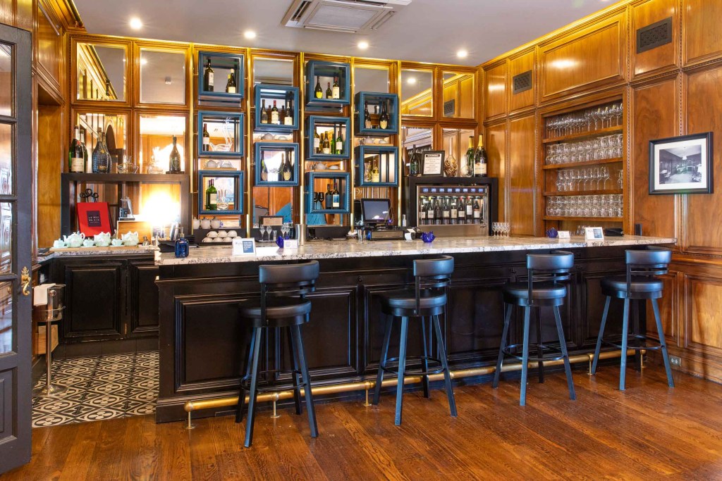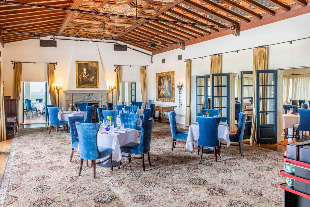 One of the highlights of the mansion is the jewel-like Jamie’s Bar. Formerly the library of the Wrigley Mansion, Jamie’s Bar interior retains its original marble fireplace and Filipino walnut wood paneling. Along with designer Wendy Black Rodgers, Jamie updated the decor, adding a bit of color. “I love blue and wanted to bring blue into the mansion…and to make the bar an intimate place for people to gather.”